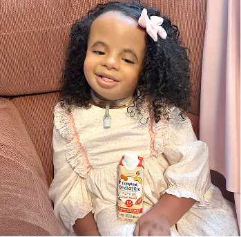 Miah ha tenido dificultades para alimentarse desde que nació y tuvo una sonda nasogástrica (NG) durante 6 meses; luego le colocaron una sonda gástrica (G-tube) mediante cirugía. Toda su alimentación ha sido por sonda. Fue diagnosticada con trastorno de alimentación pediátrico después de 2 años de ser alimentada por sonda. Tuvo que lidiar con tantos vómitos y su cuerpo rechazaba fórmula tras fórmula hasta que cambiamos a Compleat® hace casi 3 años. Desde que hicimos el cambio, hemos avanzado poco a poco: de negarse a tocar los alimentos, a aceptar pequeños sabores, y ahora a comer de 1 a 2 comidas por boca. Ha sido realmente increíble ver su resiliencia y su crecimiento con Compleat® de nuestro lado, ofreciéndonos versatilidad y flexibilidad para usarlo tanto por sonda como por vía oral mientras trabajamos para que dependa cada vez menos de la sonda.